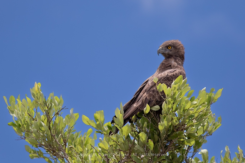 The group was joined by local guide David Letsoalo early the next morning and, despite the continuing rain, most of the group were determined to get to the site where we most likely to encounter Bat Hawk during the trip. Thanks to David’s expert local knowledge, we found the pair and their fledgling in a stand of tall Eucalyptus and everyone enjoyed excellent views with one adult even putting on a bit of a flight-display in the cold, wet conditions. After breakfast at the Magoebaskloof Hotel, the group departed for the Punda Maria gate of the Kruger National Park travelling through several communal settlements. Despite the evident impact of human activity, a number of new raptor species were added to the trip-list, namely Eurasian Hobby, African Hawk Eagle and Lizard Buzzard.