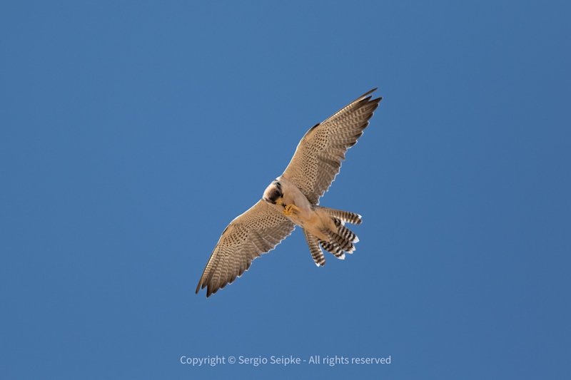 A walk around the area produced excellent views of a family of Rock Kestrels with two juveniles incessantly begging for food from their parents. Other interesting sightings included a fly-past from a flock of 7 Blue Cranes, South Africa’s national bird. We turned back to Cape Town by mid-morning due to the wind and heat and enjoyed lunch at an excellent seafood restaurant not too far from the guesthouse. Arrangements were made to meet with local researcher Dr. Andrew Jenkins who agreed to show us some of his known sites for Peregrine Falcon in the afternoon. The first two sites were within an urban setting of two pairs nesting in next boxes attached to the side of buildings about 2 Km apart. The recently fledged juveniles were quite vocal and one of the adults entertained us with a fly-past and good photo-opportunity.