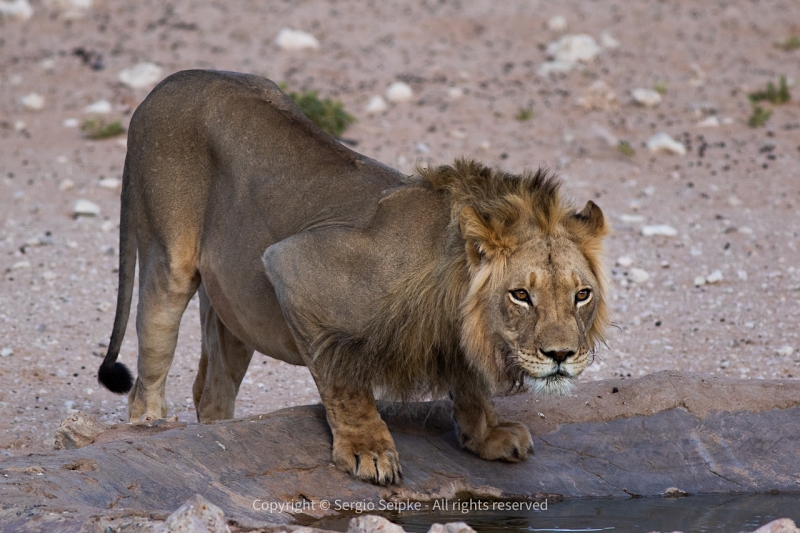 We decided to head west from camp this morning and drive along the Auob-river to see what we could find. Our first sighting of Cheetah happened in the dunes before we even reached the riverbed, but the animals were rather skittish and quickly disappeared in the tall grass. We proceeded and again encountered the pride of Lions at the same waterhole as the previous afternoon. One of the males provided brief excitement when it charged after a Black-backed Jackal in the direction of our vehicles. We eventually drove on and finally located a pair of African Pygmy Falcon perched on top of a small tree in the riverbed. This was followed by sightings of Greater Kestrel, a pair of Lanner Falcons soaring in the breeze and catching and eating dragonflies on the wing as well as two sightings of Martial Eagle.