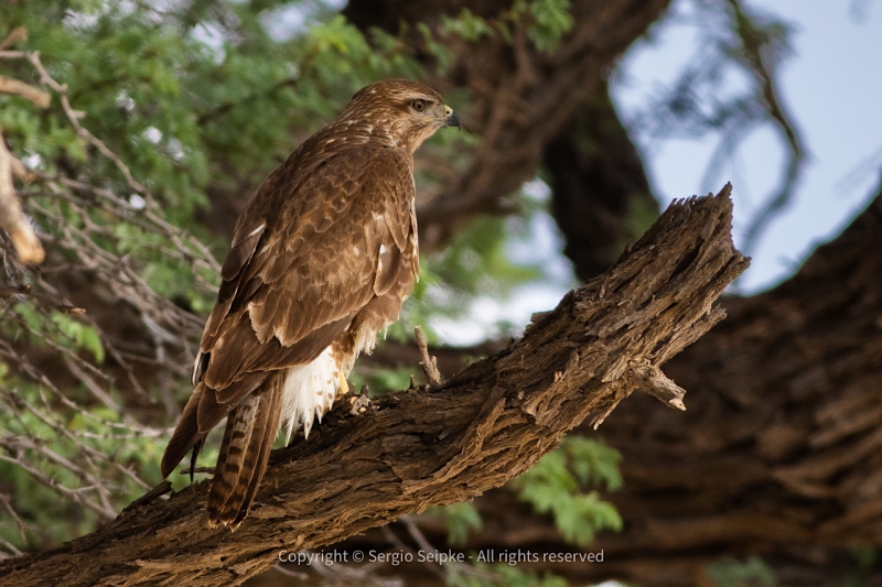 Our flight departed before 7am and it is safe to say that the landing at Upington in a howling gale was “interesting”. We again collected new minivans, replenished water and other supplies and then departed on the 270 Km drive north to Twee Rivieren in the Kgalagadi Transfrontier Conservation Area (KTFCA) in a strong cross-wind which resulted in very few raptor sightings apart from a couple of Pale Chanting Goshawks and a Jackal Buzzard, all of whom were clinging to their perches in the strong wind. A pair of African White-backed Vultures on a Camelthorn-tree near Askham was also a welcome sight. We finally arrived at Twee Rivieren at about 14:00 and checked into our accommodation. Our first drive into the park in the late afternoon promised far better views of raptors and other game as the wind had died down somewhat.