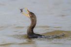 The boat trip in the afternoon seemed a bit slower in terms of number of birds, but we still hit the 42 species mark (46 in the morning) with some interesting findings. For starters, we found a Palm-nut Vulture nest with and adult inside. An Osprey flying over the river also made its appearance. However, the best was still to come, with great views of a single Banded Snake-Eagle that was found drinking by the river and later flying up to a tree where we could watch and photograph it. This was the perfect way to finish a great day!